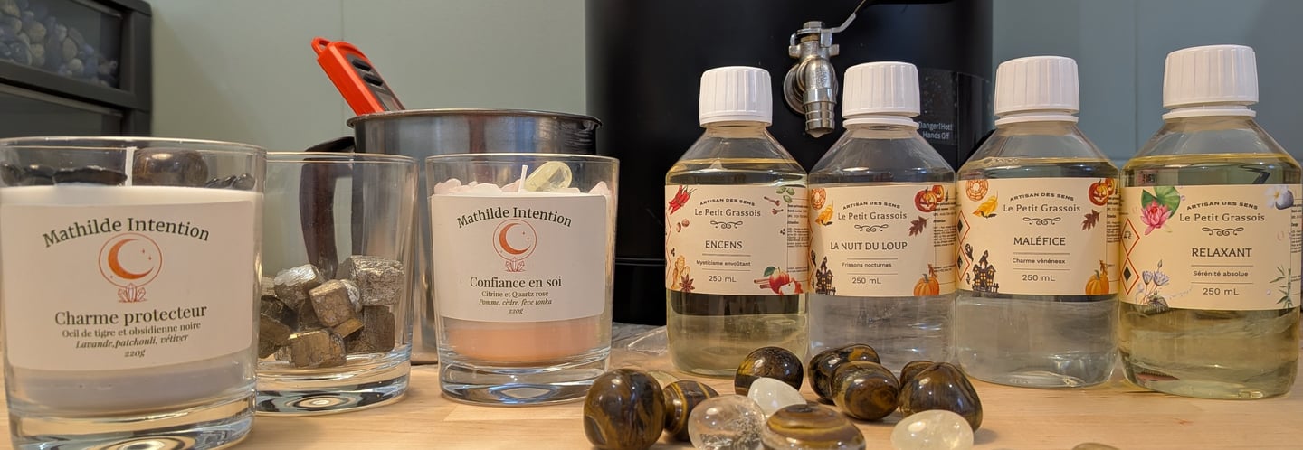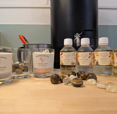 Un petit écrin chaleureux où naissent nos bougies et bijoux d'intention, entre douceur et magie.